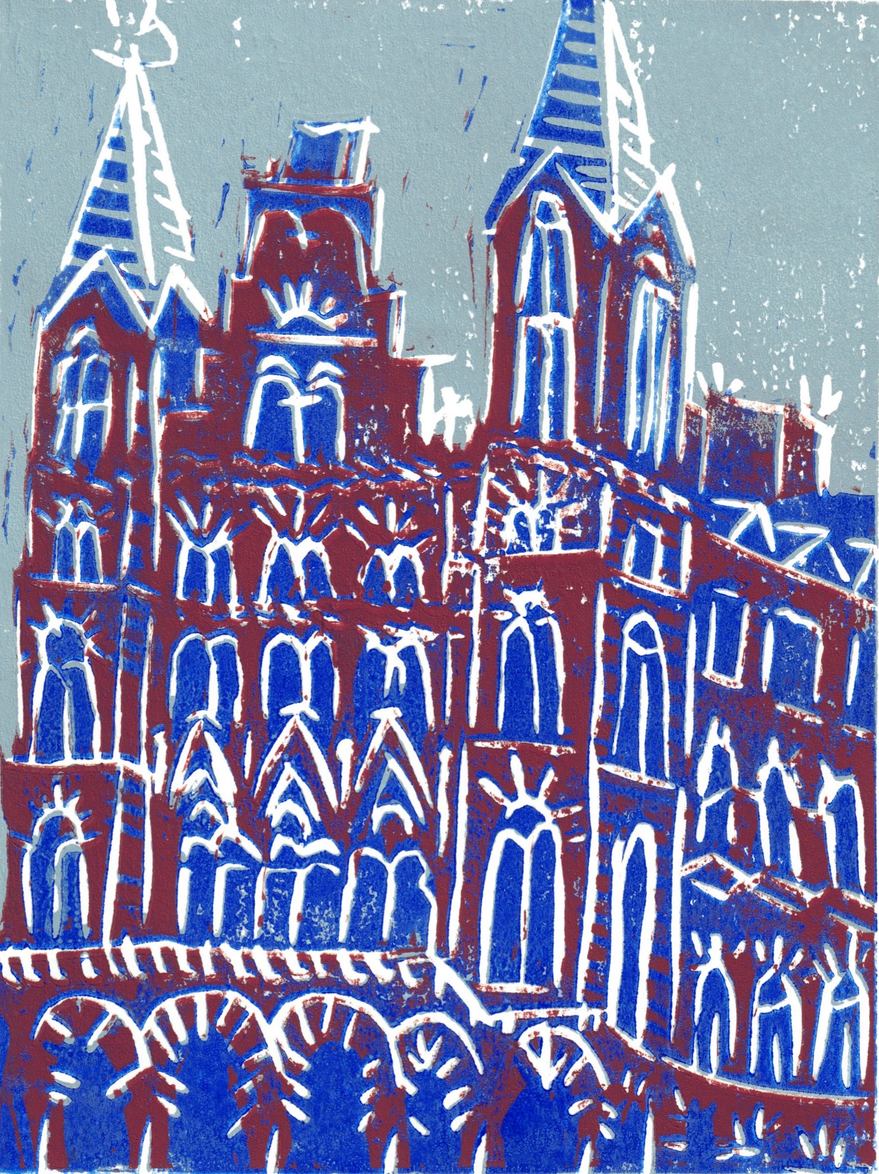 In Summer 2025 after a period away form etching, I decided to try making some lino cuts. This was motivated by the simplicity of the process and the fact that lino blocks weight very little compared with steel etching plates. Also with the linocut reduction method, only one block is needed, whereas with etchings I was using one plate for each colour.